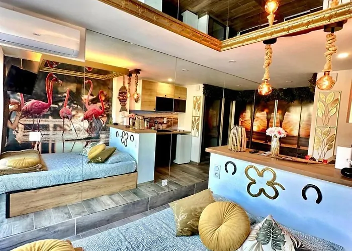 Reserve Naturelle Nationale du Bagnas ist in etwa 10 Minuten mit dem Auto zu erreichen, während Le Glamour rund 5 Gehminuten von dem 1-Zimmer-Apartment entfernt liegt. Dinoland Aquadino liegt in einer Entfernung von ca. 2 km.